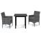 Ensemble à manger de jardin coussins 3pcs Résine tressée GrisCet ensemble de salle à manger de jardin est une combinaison parfaite de style et de fonctionnalité et est destiné à être le point de mire de votre jardin, balcon ou patio. Avec un cadre en acier robuste enveloppé de résine tressée résistante aux intempéries, les chaises de jardin sont à l'épreuve de la rouille et de la moisissure, offrant des années de détente de qualité. La table d'extérieur présente un dessus de table en verre aux lignes simples, facile à nettoyer et adapté à une utilisation en extérieur. Le cadre en aluminium assure également la stabilité et la robustesse. De plus, les coussins bien rembourrés offrent un confort ultime pendant votre temps assis. Cet ensemble de salle à manger de patio est facile à déplacer grâce à sa construction légère. Remarque : afin de prolonger la durée de vie des meubles d'extérieur, nous vous recommandons de les protéger avec une housse imperméable. Maximum 110 kg par siège. Soyez conscient du risque de feu ouvert et d'autres sources de forte chaleur à proximité de l'appareil.