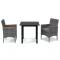 Ensemble à manger de jardin coussins 3pcs Résine tressée GrisCet ensemble de salle à manger de jardin est une combinaison parfaite de style et de fonctionnalité et est destiné à être le point de mire de votre jardin, balcon ou patio. Avec un cadre en acier robuste enveloppé de résine tressée résistante aux intempéries, les chaises de jardin sont à l'épreuve de la rouille et de la moisissure, offrant des années de détente de qualité. Les accoudoirs sont joliment décorés avec du bois d'acacia massif avec une finition à l'huile naturelle, ce qui apporte un sentiment de charme rustique. La table d'extérieur présente un dessus de table en verre aux lignes simples, facile à nettoyer et adapté à une utilisation à l'extérieur. Le cadre en aluminium assure également la stabilité et la robustesse. De plus, les coussins bien rembourrés offrent un confort ultime pendant votre temps assis. Cet ensemble de salle à manger de patio est facile à déplacer grâce à sa construction légère. Remarque : afin de prolonger la durée de vie des meubles d'extérieur, nous vous recommandons de les protéger avec une housse imperméable.