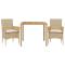 Ensemble à manger de jardin et coussins 3pcs beige rotin acaciaCet ensemble de salle à manger de jardin est un excellent choix pour les repas en plein air ou pour vous détendre dans le jardin, dans l'arrière-cour ou sur la terrasse. Matériau durable : la résine tressée, également connue sous le nom de poly rotin, est un matériau synthétique solide et nécessitant peu d'entretien qui ressemble au rotin naturel. Il est léger, facile à nettoyer et couramment utilisé pour les meubles d'extérieur en raison de sa durabilité et de ses propriétés de résistance aux intempéries.Expérience d'assise confortable : cet ensemble de meubles d'extérieur, doté de coussins épais, offre une expérience d'assise confortable.Housse amovible et lavable : ces coussins de siège sont dotés de housses amovibles pour un lavage et un entretien faciles.Dessus stable et facile à nettoyer : cette table de jardin a un dessus en bois d'acacia robuste, durable et facile à nettoyer avec un chiffon humide. Bon à savoir :Pour que vos meubles d'extérieur restent beaux, nous vous recommandons de les protéger avec une housse imperméable. Maximum 110 kg par siège. Soyez conscient du risque de feu ouvert et d'autres sources de forte chaleur à proximité de l'appareil.