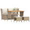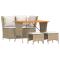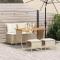 Ensemble à manger de jardin coussins 4 pcs beige résine tresséeCet ensemble de salle à manger de jardin est un excellent choix pour les repas en plein air ou pour vous détendre dans le jardin, dans l'arrière-cour ou sur la terrasse. Matériau durable : la résine tressée, également connue sous le nom de poly rotin, est un matériau synthétique solide et nécessitant peu d'entretien qui ressemble au rotin naturel. Elle est légère, facile à nettoyer et couramment utilisée pour les meubles d'extérieur en raison de sa durabilité et de ses propriétés de résistance aux intempéries.Dessus stable et facile à nettoyer : cette table de jardin a un dessus en bois d'acacia robuste, durable et facile à nettoyer avec un chiffon humide.Expérience d'assise confortable : ce mobilier d'extérieur, doté de coussins épais, offre une expérience d'assise confortable.Housse amovible et lavable : ces coussins de siège sont dotés de housses amovibles pour un lavage et un entretien faciles.Pouf polyvalent : le tabouret est polyvalent, servant de repose-pieds confortable lorsque vous vous prélassez sur le canapé ou de siège supplémentaire dans votre jardin. Bon à savoir :Pour que vos meubles d'extérieur restent beaux, nous vous recommandons de les protéger avec une housse imperméable.