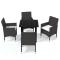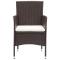 Ensemble à manger de jardin et coussins 5 pcs Poly rotin MarronCet ensemble de salle à manger de jardin est une combinaison parfaite de style et de fonctionnalité et est destiné à être le point de mire de votre jardin, balcon ou patio. Avec un cadre en acier robuste enveloppé de résine tressée résistante aux intempéries, les chaises de jardin sont à l'épreuve de la rouille et de la moisissure, offrant des années de détente de qualité. La table d'extérieur présente un dessus de table en verre aux lignes simples, facile à nettoyer et adapté à une utilisation en extérieur. Le cadre en aluminium assure également la stabilité et la robustesse. De plus, les coussins bien rembourrés offrent un confort ultime pendant votre temps assis. Cet ensemble de salle à manger de patio est facile à déplacer grâce à sa construction légère. Remarque : afin de prolonger la durée de vie des meubles d'extérieur, nous vous recommandons de les protéger avec une housse imperméable. Maximum 110 kg par siège. Soyez conscient du risque de feu ouvert et d'autres sources de forte chaleur à proximité de l'appareil.
