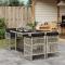 Ensemble à manger de jardin et coussins 5 pcs gris clair rotinCet ensemble de salle à manger de jardin est un excellent choix pour les repas en plein air ou pour vous détendre dans le jardin, dans l'arrière-cour ou sur la terrasse. Matériau durable : la résine tressée, également connue sous le nom de poly rotin, est un matériau synthétique solide et nécessitant peu d'entretien qui ressemble au rotin naturel. Il est léger, facile à nettoyer et couramment utilisé pour les meubles d'extérieur en raison de sa durabilité et de ses propriétés de résistance aux intempéries.Rangement compact : ces chaises sont dotées d'un dossier rabattable, ce qui permet de les ranger facilement sous la table. Une fois pliées, elles se rangent parfaitement sous la table, formant un cube peu encombrant.Expérience d'assise confortable : ce mobilier d'extérieur, doté de coussins épais, offre une expérience d'assise confortable.Housse amovible et lavable : ces coussins sont dotés de housses amovibles pour un lavage et un entretien faciles. Les housses de coussin ont un rabat à l'arrière pour une fixation facile aux dossiers.Dessus en verre : le dessus de la table d'extérieur est fabriqué en verre trempé solide et durable, ce qui le rend facile à nettoyer avec un chiffon humide et ajoute une touche d'élégance à votre espace extérieur. Bon à savoir : Pour que vos meubles d'extérieur restent beaux, nous vous recommandons de les protéger avec une housse imperméable. Maximum 110 kg par siège.