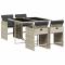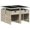 Ensemble à manger de jardin et coussins 5 pcs gris clair rotinCet ensemble de salle à manger de jardin est un excellent choix pour les repas en plein air ou pour vous détendre dans le jardin, dans l'arrière-cour ou sur la terrasse. Matériau durable : la résine tressée, également connue sous le nom de poly rotin, est un matériau synthétique solide et nécessitant peu d'entretien qui ressemble au rotin naturel. Il est léger, facile à nettoyer et couramment utilisé pour les meubles d'extérieur en raison de sa durabilité et de ses propriétés de résistance aux intempéries.Rangement compact : ces chaises sont dotées d'un dossier rabattable, ce qui permet de les ranger facilement sous la table. Une fois pliées, elles se rangent parfaitement sous la table, formant un cube peu encombrant.Expérience d'assise confortable : ce mobilier d'extérieur, doté de coussins épais, offre une expérience d'assise confortable.Housse amovible et lavable : ces coussins de siège sont dotés de housses amovibles pour un lavage et un entretien faciles. Les housses de coussin de chaise ont un rabat à l'arrière pour une fixation facile aux chaises.Dessus stable et facile à nettoyer : cette table de jardin est dotée d'un dessus en verre trempé robuste, durable et facile à nettoyer à l'aide d'un chiffon humide. Bon à savoir : Pour que vos meubles d'extérieur restent beaux, nous vous recommandons de les protéger avec une housse imperméable. Maximum 110 kg par siège.