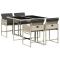 Ensemble à manger de jardin et coussins 5 pcs gris clair rotinCet ensemble de salle à manger de jardin est un excellent choix pour les repas en plein air ou pour vous détendre dans le jardin, dans l'arrière-cour ou sur la terrasse. Matériau durable : la résine tressée, également connue sous le nom de poly rotin, est un matériau synthétique solide et nécessitant peu d'entretien qui ressemble au rotin naturel. Il est léger, facile à nettoyer et couramment utilisé pour les meubles d'extérieur en raison de sa durabilité et de ses propriétés de résistance aux intempéries.Rangement compact : ces chaises sont dotées d'un dossier rabattable, ce qui permet de les ranger facilement sous la table. Une fois pliées, elles se rangent parfaitement sous la table, formant un cube peu encombrant.Expérience d'assise confortable : ce mobilier d'extérieur, doté de coussins épais, offre une expérience d'assise confortable.Housse amovible et lavable : ces coussins de siège sont dotés de housses amovibles pour un lavage et un entretien faciles. Les housses de coussin ont un rabat à l'arrière pour une fixation facile aux dossiers.Dessus en verre : le dessus de la table d'extérieur est fabriqué en verre trempé solide et durable, ce qui le rend facile à nettoyer avec un chiffon humide et ajoute une touche d'élégance à votre espace extérieur. Bon à savoir :Pour que vos meubles d'extérieur restent beaux, nous vous recommandons de les protéger avec une housse imperméable. Maximum 110 kg par siège.