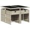 Ensemble à manger de jardin et coussins 5 pcs gris clair rotinCet ensemble de salle à manger de jardin est un excellent choix pour les repas en plein air ou pour vous détendre dans le jardin, dans l'arrière-cour ou sur la terrasse. Matériau durable : la résine tressée, également connue sous le nom de poly rotin, est un matériau synthétique solide et nécessitant peu d'entretien qui ressemble au rotin naturel. Il est léger, facile à nettoyer et couramment utilisé pour les meubles d'extérieur en raison de sa durabilité et de ses propriétés de résistance aux intempéries.Rangement compact : ces chaises sont dotées d'un dossier rabattable, ce qui permet de les ranger facilement sous la table. Une fois pliées, elles se rangent parfaitement sous la table, formant un cube peu encombrant.Expérience d'assise confortable : ce mobilier d'extérieur, doté de coussins épais, offre une expérience d'assise confortable.Housse amovible et lavable : ces coussins de siège sont dotés de housses amovibles pour un lavage et un entretien faciles. Les housses de coussin de chaise ont un rabat à l'arrière pour une fixation facile aux chaises.Dessus stable et facile à nettoyer : cette table de jardin est dotée d'un dessus en verre trempé robuste, durable et facile à nettoyer à l'aide d'un chiffon humide. Bon à savoir : Pour que vos meubles d'extérieur restent beaux, nous vous recommandons de les protéger avec une housse imperméable. Maximum 110 kg par siège. Soyez conscient du risque de feu ouvert et d'autres sources de forte chaleur à proximité de l'appareil.