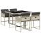Ensemble à manger de jardin et coussins 5 pcs gris clair rotinCet ensemble de salle à manger de jardin est un excellent choix pour les repas en plein air ou pour vous détendre dans le jardin, dans l'arrière-cour ou sur la terrasse. Matériau durable : la résine tressée, également connue sous le nom de poly rotin, est un matériau synthétique solide et nécessitant peu d'entretien qui ressemble au rotin naturel. Il est léger, facile à nettoyer et couramment utilisé pour les meubles d'extérieur en raison de sa durabilité et de ses propriétés de résistance aux intempéries.Rangement compact : ces chaises sont dotées d'un dossier rabattable, ce qui permet de les ranger facilement sous la table. Une fois pliées, elles se rangent parfaitement sous la table, formant un cube peu encombrant.Expérience d'assise confortable : ce mobilier d'extérieur, doté de coussins épais, offre une expérience d'assise confortable.Housse amovible et lavable : ces coussins de siège sont dotés de housses amovibles pour un lavage et un entretien faciles. Les housses de coussin ont un rabat à l'arrière pour une fixation facile aux dossiers.Dessus en verre : le dessus de la table d'extérieur est fabriqué en verre trempé solide et durable, ce qui le rend facile à nettoyer avec un chiffon humide et ajoute une touche d'élégance à votre espace extérieur. Bon à savoir :Pour que vos meubles d'extérieur restent beaux, nous vous recommandons de les protéger avec une housse imperméable. Maximum 110 kg par siège. Soyez conscient du risque de feu ouvert et d'autres sources de forte chaleur à proximité de l'appareil.