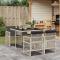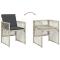 Ensemble à manger de jardin et coussins 5 pcs gris clair rotinCet ensemble de salle à manger de jardin est un excellent choix pour les repas en plein air ou pour vous détendre dans le jardin, l'arrière-cour ou le patio. Matériau durable : la résine tressée, également connue sous le nom de poly rotin, est un matériau synthétique solide et nécessitant peu d'entretien qui ressemble au rotin naturel. Elle est légère, facile à nettoyer et couramment utilisée pour les meubles d'extérieur en raison de sa durabilité et de ses propriétés de résistance aux intempéries. Dessus en verre : le dessus de la table d'extérieur est fabriqué en verre trempé solide et durable, ce qui le rend facile à nettoyer avec un chiffon humide et ajoute une touche d'élégance à votre espace extérieur. Rangement compact : ces chaises sont dotées d'un dossier rabattable, ce qui permet de les ranger facilement sous la table. Une fois pliées, elles se rangent parfaitement sous la table, formant un cube peu encombrant. Expérience d'assise confortable : ce mobilier d'extérieur, doté de coussins épais, offre une expérience d'assise confortable. Housse amovible et lavable : ces coussins de siège sont dotés de housses amovibles pour un lavage et un entretien faciles. Les housses de coussin de chaise ont un rabat à l'arrière pour une fixation facile aux chaises. Bon à savoir :Pour que vos meubles d'extérieur restent beaux, nous vous recommandons de les protéger avec une housse imperméable.