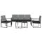 Ensemble à manger de jardin coussins 5 pcs gris foncé rotin PPProfitez d'un moment de café confortable dans votre espace extérieur avec cet ensemble à manger de jardin ! Cet ensemble à manger est un complément parfait à votre jardin et à votre terrasse, créant une impression durable ! Matériau durable : le polypropylène (PP) est un plastique populaire qui est également l'un des matériaux les plus utilisés dans le mobilier d'extérieur. Il est léger, robuste et résistant aux chocs.Cadre robuste : le cadre en acier de l'ensemble à manger de jardin assure robustesse et stabilité.Conception réfléchie : les coussins bien rembourrés assurent le confort de votre assise. De plus, les matériaux en plastique et en acier rendent le siège d'extérieur facile à nettoyer.Dessus de table robuste : le dessus de table robuste de la table à manger est parfait pour placer des repas, des boissons, des vases, des bols de fruits ou d'autres objets décoratifs.Conception modulaire : l'ensemble de salon de jardin est flexible et facile à déplacer, vous pouvez donc le combiner avec d'autres segments modulaires de la boutique en ligne pour créer vos propres configurations personnelles d'ensemble à manger d'extérieur ! Remarque :Pour que vos meubles d'extérieur restent beaux, nous vous recommandons de les protéger avec une housse imperméable. Maximum 110 kg par siège.