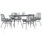 Ensemble à manger jardin coussins 5 pcs gris poly rotin verreCet ensemble de salle à manger de jardin est un excellent choix pour les repas en plein air ou pour vous détendre dans le jardin, dans l'arrière-cour ou sur la terrasse. Matériau durable : la résine tressée, également connue sous le nom de poly rotin, est un matériau synthétique solide et nécessitant peu d'entretien qui ressemble au rotin naturel. Elle est légère, facile à nettoyer et couramment utilisée pour les meubles d'extérieur en raison de sa durabilité et de ses propriétés de résistance aux intempéries. Cadre robuste et stable : le cadre en acier enduit de poudre est solide, stable, durable et résistant à la corrosion et aux intempéries, ce qui garantit des performances durables. Dossier et accoudoir pratiques : cette chaise de jardin est dotée d'un dossier et de deux accoudoirs qui offrent un soutien et un confort optimaux aux utilisateurs. Housse amovible et lavable : ces coussins de siège sont dotés de housses amovibles pour un lavage et un entretien faciles. Dessus en verre : le dessus de la table d'extérieur est fabriqué en verre trempé solide et durable, ce qui le rend facile à nettoyer avec un chiffon humide et ajoute une touche d'élégance à votre espace extérieur. Bon à savoir : Pour que vos meubles d'extérieur restent beaux, nous vous recommandons de les protéger avec une housse imperméable. Maximum 110 kg par siège. Soyez conscient du risque de feux ouverts et d'autres sources de forte chaleur à proximité du produit.