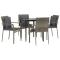 Ensemble à manger de jardin coussins 5 pcs noir et grisCet ensemble de salle à manger de jardin tendance, au design élégant et contemporain, est un excellent choix pour manger ou vous détendre dans votre jardin. Matériau résistant aux intempéries : la résine tressée, également connue sous le nom de rotin poly, résiste aux intempéries et est facile à nettoyer. Elle reste belle à l'extérieur pendant une longue période. Elle offre une excellente qualité, commodité et un aspect esthétique.Cadre robuste : les cadres en acier enduit de poudre rendent l'ensemble de salle à manger d'extérieur robuste et stable pour une utilisation quotidienne à l'extérieur.Dessus de table pratique : le dessus lisse de la table de jardin est en verre trempé, facile à nettoyer avec un chiffon humide. De plus, le dessus robuste est parfait pour placer des repas, des boissons et d'autres objets décoratifs.Conception modulaire : l'ensemble de salle à manger de jardin est flexible et facile à déplacer, vous pouvez donc le combiner avec d'autres segments modulaires dans la boutique en ligne pour créer vos propres configurations d'ensemble de salle à manger de jardin !Expérience d'assise confortable : le dossier ajoute un confort d'assise supplémentaire à la chaise de jardin. De plus, les coussins bien rembourrés vous permettent de vous asseoir confortablement. Bon à savoir :Pour faciliter au maximum le montage, chaque produit est livré avec des instructions. Remarque :Pour que vos meubles d'extérieur restent beaux, nous vous recommandons de les protéger avec une housse imperméable. Maximum 110 kg par siège.
