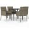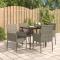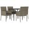 Ensemble à manger de jardin coussins 5 pcs noir et grisCet ensemble de salle à manger de jardin tendance, au design élégant et contemporain, est un excellent choix pour manger ou vous détendre dans votre jardin. Matériau résistant aux intempéries : la résine tressée, également connue sous le nom de rotin poly, résiste aux intempéries et est facile à nettoyer. Elle reste belle à l'extérieur pendant une longue période. Elle offre une excellente qualité, commodité et un aspect esthétique.Cadre robuste : les cadres en acier enduit de poudre rendent l'ensemble de salle à manger d'extérieur robuste et stable pour une utilisation quotidienne à l'extérieur.Dessus de table pratique : le dessus lisse de la table de jardin est en verre trempé, facile à nettoyer avec un chiffon humide. De plus, le dessus robuste est parfait pour placer des repas, des boissons et d'autres objets décoratifs.Conception modulaire : l'ensemble de salle à manger de jardin est flexible et facile à déplacer, vous pouvez donc le combiner avec d'autres segments modulaires dans la boutique en ligne pour créer vos propres configurations d'ensemble de salle à manger de jardin !Expérience d'assise confortable : le dossier ajoute un confort d'assise supplémentaire à la chaise de jardin. De plus, les coussins bien rembourrés vous permettent de vous asseoir confortablement. Bon à savoir :Pour faciliter au maximum le montage, chaque produit est livré avec des instructions. Remarque :Pour que vos meubles d'extérieur restent beaux, nous vous recommandons de les protéger avec une housse imperméable. Maximum 110 kg par siège.