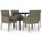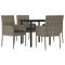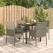 Ensemble à manger de jardin coussins 5 pcs noir et grisCet ensemble de salle à manger de jardin tendance, au design élégant et contemporain, est un excellent choix pour manger ou vous détendre dans votre jardin. Matériau résistant aux intempéries : la résine tressée, également connue sous le nom de rotin poly, résiste aux intempéries et est facile à nettoyer. Elle reste belle à l'extérieur pendant une longue période. Elle offre une excellente qualité, commodité et un aspect esthétique. Cadre robuste : les cadres en acier enduit de poudre rendent l'ensemble de salle à manger d'extérieur robuste et stable pour une utilisation quotidienne à l'extérieur. Dessus de table pratique : le dessus lisse de la table de jardin est en verre trempé, facile à nettoyer avec un chiffon humide. De plus, le dessus robuste est parfait pour placer des repas, des boissons et d'autres objets décoratifs. Conception modulaire : l'ensemble de salle à manger de jardin est flexible et facile à déplacer, vous pouvez donc le combiner avec d'autres segments modulaires dans la boutique en ligne pour créer vos propres configurations d'ensemble de salle à manger de jardin ! Expérience d'assise confortable : le dossier ajoute un confort d'assise supplémentaire à la chaise de jardin. De plus, les coussins bien rembourrés vous permettent de vous asseoir confortablement. Bon à savoir : Pour faciliter au maximum le montage, chaque produit est livré avec des instructions. Remarque : Pour que vos meubles d'extérieur restent beaux, nous vous recommandons de les protéger avec une housse imperméable. Maximum 110 kg par siège.