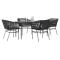 Ensemble à manger de jardin et coussins 5 pcs noir rotin verreCet ensemble de salle à manger de jardin est un excellent choix pour les repas en plein air ou pour vous détendre dans le jardin, dans l'arrière-cour ou sur la terrasse. Matériau durable : la résine tressée, également connue sous le nom de poly rotin, est un matériau synthétique solide et nécessitant peu d'entretien qui ressemble au rotin naturel. Elle est légère, facile à nettoyer et couramment utilisée pour les meubles d'extérieur en raison de sa durabilité et de ses propriétés de résistance aux intempéries. Cadre robuste et stable : le cadre en acier enduit de poudre est solide, stable, durable et résistant à la corrosion et aux intempéries, ce qui garantit des performances durables. Dossier et accoudoir pratiques : cette chaise de jardin est dotée d'un dossier et de deux accoudoirs qui offrent un soutien et un confort optimaux aux utilisateurs. Housse amovible et lavable : ces coussins de siège sont dotés de housses amovibles pour un lavage et un entretien faciles. Dessus en verre : le dessus de la table d'extérieur est fabriqué en verre trempé solide et durable, ce qui le rend facile à nettoyer avec un chiffon humide et ajoute une touche d'élégance à votre espace extérieur. Bon à savoir : Pour que vos meubles d'extérieur restent beaux, nous vous recommandons de les protéger avec une housse imperméable. Maximum 110 kg par siège. Soyez conscient du risque de feux ouverts et d'autres sources de forte chaleur à proximité du produit.