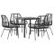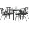 Ensemble à manger de jardin et coussins 5 pcs noir rotin verreCet ensemble de salle à manger de jardin est un excellent choix pour les repas en plein air ou pour vous détendre dans le jardin, dans l'arrière-cour ou sur la terrasse. Matériau durable : la résine tressée, également connue sous le nom de poly rotin, est un matériau synthétique solide et nécessitant peu d'entretien qui ressemble au rotin naturel. Elle est légère, facile à nettoyer et couramment utilisée pour les meubles d'extérieur en raison de sa durabilité et de ses propriétés de résistance aux intempéries. Cadre robuste et stable : le cadre en acier enduit de poudre est solide, stable, durable et résistant à la corrosion et aux intempéries, ce qui garantit des performances durables. Dossier et accoudoir pratiques : cette chaise de jardin est dotée d'un dossier et de deux accoudoirs qui offrent un soutien et un confort optimaux aux utilisateurs. Housse amovible et lavable : ces coussins de siège sont dotés de housses amovibles pour un lavage et un entretien faciles. Dessus en verre : le dessus de la table d'extérieur est fabriqué en verre trempé solide et durable, ce qui le rend facile à nettoyer avec un chiffon humide et ajoute une touche d'élégance à votre espace extérieur. Bon à savoir : Pour que vos meubles d'extérieur restent beaux, nous vous recommandons de les protéger avec une housse imperméable. Maximum 110 kg par siège. Soyez conscient du risque de feux ouverts et d'autres sources de forte chaleur à proximité du produit.