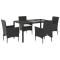 Ensemble à manger de jardin et coussins 5 pcs noir rotin verreCet ensemble de salle à manger de jardin est un excellent choix pour les repas en plein air ou pour vous détendre dans le jardin, dans l'arrière-cour ou sur la terrasse. Matériau durable : la résine tressée, également connue sous le nom de poly rotin, est un matériau synthétique solide et nécessitant peu d'entretien qui ressemble au rotin naturel. Il est léger, facile à nettoyer et couramment utilisé pour les meubles d'extérieur en raison de sa durabilité et de ses propriétés de résistance aux intempéries. Expérience d'assise confortable : cet ensemble de meubles d'extérieur, doté de coussins épais, offre une expérience d'assise confortable. Housse amovible et lavable : ces coussins de siège sont dotés de housses amovibles pour un lavage et un entretien faciles. Dessus en verre : le dessus de la table d'extérieur est fabriqué en verre trempé solide et durable, ce qui le rend facile à nettoyer avec un chiffon humide et ajoute une touche d'élégance à votre espace extérieur. Bon à savoir : Pour que vos meubles d'extérieur restent beaux, nous vous recommandons de les protéger avec une housse imperméable. Maximum 110 kg par siège. Soyez conscient du risque de feu ouvert et d'autres sources de forte chaleur à proximité de l'appareil.