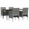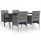 Ensemble à manger de jardin et coussins 5pcs Gris/noirCet ensemble de salle à manger de jardin, au design élégant et contemporain, est un excellent choix pour manger ou se détendre dans le jardin. Matériau résistant aux intempéries : fabriqué en résine tressée résistante aux intempéries et à l'eau, cet ensemble de salle à manger de jardin est facile à nettoyer, résistant à l'usure et adapté à un usage quotidien. Cadre robuste : les cadres en acier enduit de poudre rendent l'ensemble de salle à manger d'extérieur robuste et stable pour une utilisation quotidienne à l'extérieur. Dessus de table pratique : le dessus lisse de la table de salle à manger est en verre trempé, facile à nettoyer avec un chiffon humide. De plus, le dessus robuste est parfait pour placer des repas, des boissons et d'autres objets décoratifs. Design confortable : conçues avec des dossiers et des accoudoirs incurvés, ces chaises d'extérieur offrent un maximum de confort. Confort supplémentaire : les coussins bien rembourrés offrent un confort ultime pendant votre temps d'assise. Remarque : Afin de prolonger la durée de vie de votre mobilier d'extérieur, nous vous recommandons de le protéger avec une housse imperméable. Chaque produit est livré avec un manuel de montage dans la boîte pour un montage facile. Maximum 110 kg par siège. Soyez conscient du risque de feu ouvert et d'autres sources de forte chaleur à proximité de l'appareil.