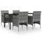 Ensemble à manger de jardin et coussins 5pcs Gris/noirCet ensemble de salle à manger de jardin, au design élégant et contemporain, est un excellent choix pour manger ou se détendre dans le jardin. Matériau résistant aux intempéries : fabriqué en résine tressée résistante aux intempéries et à l'eau, cet ensemble de salle à manger de jardin est facile à nettoyer, résistant à l'usure et adapté à un usage quotidien. Cadre robuste : les cadres en acier enduit de poudre rendent l'ensemble de salle à manger d'extérieur robuste et stable pour une utilisation quotidienne à l'extérieur. Dessus de table pratique : le dessus lisse de la table de salle à manger est en verre trempé, facile à nettoyer avec un chiffon humide. De plus, le dessus robuste est parfait pour placer des repas, des boissons et d'autres objets décoratifs. Design confortable : conçues avec des dossiers et des accoudoirs incurvés, ces chaises d'extérieur offrent un maximum de confort. Confort supplémentaire : les coussins bien rembourrés offrent un confort ultime pendant votre temps d'assise. Remarque : Afin de prolonger la durée de vie de votre mobilier d'extérieur, nous vous recommandons de le protéger avec une housse imperméable. Chaque produit est livré avec un manuel de montage dans la boîte pour un montage facile. Maximum 110 kg par siège. Soyez conscient du risque de feu ouvert et d'autres sources de forte chaleur à proximité de l'appareil.
