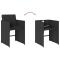 Ensemble à manger de jardin coussins 5pcs Noir Résine tresséeCet ensemble de salle à manger de jardin est un excellent choix pour les repas en plein air ou pour vous détendre dans le jardin, dans l'arrière-cour ou sur la terrasse. Matériau durable : la résine tressée, également connue sous le nom de poly rotin, est un matériau synthétique solide et nécessitant peu d'entretien qui ressemble au rotin naturel. Il est léger, facile à nettoyer et couramment utilisé pour les meubles d'extérieur en raison de sa durabilité et de ses propriétés de résistance aux intempéries.Rangement compact : ces chaises sont dotées d'un dossier rabattable, ce qui permet de les ranger facilement sous la table. Une fois pliées, elles se rangent parfaitement sous la table, formant un cube peu encombrant.Expérience d'assise confortable : ce mobilier d'extérieur, doté de coussins épais, offre une expérience d'assise confortable.Housse amovible et lavable : ces coussins de siège sont dotés de housses amovibles pour un lavage et un entretien faciles. Les housses de coussin de chaise ont un rabat à l'arrière pour une fixation facile aux chaises.Dessus stable et facile à nettoyer : cette table de jardin est dotée d'un dessus en verre trempé robuste, durable et facile à nettoyer à l'aide d'un chiffon humide. Bon à savoir : Pour que vos meubles d'extérieur restent beaux, nous vous recommandons de les protéger avec une housse imperméable. Maximum 110 kg par siège. Soyez conscient du risque de feu ouvert et d'autres sources de forte chaleur à proximité de l'appareil.