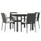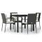 Ensemble à manger de jardin coussins 5pcs Noir Résine tresséeCet ensemble de salle à manger de jardin tendance, au design élégant et contemporain, est un excellent choix pour manger ou vous détendre dans votre jardin. Matériau résistant aux intempéries : la résine tressée, également connue sous le nom de rotin poly, résiste aux intempéries et est facile à nettoyer. Elle reste belle à l'extérieur pendant une longue période. Elle offre une excellente qualité, commodité et un aspect esthétique.Cadre robuste : les cadres en acier enduit de poudre rendent l'ensemble de salle à manger d'extérieur robuste et stable pour une utilisation quotidienne à l'extérieur.Dessus de table pratique : le dessus lisse de la table de jardin est en verre trempé, facile à nettoyer avec un chiffon humide. De plus, le dessus robuste est parfait pour placer des repas, des boissons et d'autres objets décoratifs.Conception modulaire : l'ensemble de salle à manger de jardin est flexible et facile à déplacer, vous pouvez donc le combiner avec d'autres segments modulaires dans la boutique en ligne pour créer vos propres configurations d'ensemble de salle à manger de jardin !Expérience d'assise confortable : le dossier ajoute un confort d'assise supplémentaire à la chaise de jardin. De plus, les coussins bien rembourrés vous permettent de vous asseoir confortablement. Bon à savoir :Pour faciliter au maximum le montage, chaque produit est livré avec des instructions. Remarque :Pour que vos meubles d'extérieur restent beaux, nous vous recommandons de les protéger avec une housse imperméable. Maximum 110 kg par siège.