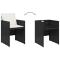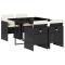 Ensemble à manger de jardin coussins 5pcs Noir Résine tresséeCet ensemble de salle à manger de jardin est un excellent choix pour les repas en plein air ou pour vous détendre dans le jardin, dans l'arrière-cour ou sur la terrasse. Matériau durable : la résine tressée, également connue sous le nom de poly rotin, est un matériau synthétique solide et nécessitant peu d'entretien qui ressemble au rotin naturel. Il est léger, facile à nettoyer et couramment utilisé pour les meubles d'extérieur en raison de sa durabilité et de ses propriétés de résistance aux intempéries.Rangement compact : ces chaises sont dotées d'un dossier rabattable, ce qui permet de les ranger facilement sous la table. Une fois pliées, elles se rangent parfaitement sous la table, formant un cube peu encombrant. Expérience d'assise confortable : ce mobilier d'extérieur, doté de coussins épais, offre une expérience d'assise confortable.Housse amovible et lavable : ces coussins de siège sont dotés de housses amovibles pour un lavage et un entretien faciles.Dessus en verre : le dessus de la table d'extérieur est fabriqué en verre trempé solide et durable, ce qui le rend facile à nettoyer avec un chiffon humide et ajoute une touche d'élégance à votre espace extérieur. Bon à savoir : Pour que vos meubles d'extérieur restent beaux, nous vous recommandons de les protéger avec une housse imperméable. Maximum 110 kg par siège. Soyez conscient du risque de feu ouvert et d'autres sources de forte chaleur à proximité de l'appareil.