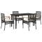 Ensemble à manger de jardin coussins 5pcs Noir Résine tresséeCet ensemble de salle à manger de jardin est un excellent choix pour les repas en plein air ou pour vous détendre dans le jardin, dans l'arrière-cour ou sur la terrasse. Matériau durable : la résine tressée, également connue sous le nom de poly rotin, est un matériau synthétique solide et nécessitant peu d'entretien qui ressemble au rotin naturel. Il est léger, facile à nettoyer et couramment utilisé pour les meubles d'extérieur en raison de sa durabilité et de ses propriétés de résistance aux intempéries. Expérience d'assise confortable : ce mobilier d'extérieur, doté de coussins épais, offre une expérience d'assise confortable. Housse amovible et lavable : ces coussins de siège sont dotés de housses amovibles pour un lavage et un entretien faciles. Dessus en verre : le dessus de la table d'extérieur est fabriqué en verre trempé solide et durable, ce qui le rend facile à nettoyer avec un chiffon humide et ajoute une touche d'élégance à votre espace extérieur. Cadre robuste et stable : le cadre en acier enduit de poudre assure la solidité et la stabilité du meuble de jardin pour une utilisation quotidienne à l'extérieur. Bon à savoir : Pour que vos meubles d'extérieur restent beaux, nous vous recommandons de les protéger avec une housse imperméable. Maximum 110 kg par siège.