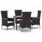 Ensemble à manger de jardin coussins 5pcs Noir Résine tresséeCet ensemble de salle à manger de jardin tendance, au design élégant et contemporain, est un excellent choix pour manger ou vous détendre dans votre jardin. Matériau résistant aux intempéries : la résine tressée, également connue sous le nom de rotin poly, résiste aux intempéries et est facile à nettoyer. Elle reste belle à l'extérieur pendant une longue période. Elle offre une excellente qualité, commodité et un aspect esthétique. Cadre robuste : les cadres en acier enduit de poudre rendent l'ensemble de salle à manger d'extérieur robuste et stable pour une utilisation quotidienne à l'extérieur. Dessus de table pratique : le dessus de table robuste est parfait pour placer des repas, des boissons et d'autres objets décoratifs. Conception modulaire : l'ensemble de salle à manger de jardin est flexible et facile à déplacer, vous pouvez donc le combiner avec d'autres segments modulaires dans la boutique en ligne pour créer vos propres configurations d'ensemble de salle à manger de jardin ! Expérience d'assise confortable : les coussins bien rembourrés offrent du confort pour votre temps d'assise. Bon à savoir : Pour faciliter au maximum le montage, chaque produit est livré avec des instructions. Remarque : Pour que vos meubles d'extérieur restent beaux, nous vous recommandons de les protéger avec une housse imperméable.
