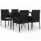 Ensemble à manger de jardin coussins 5pcs Noir Résine tressée – OBJET NON VENDU – VENTE TERMINÉE