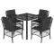 Ensemble à manger de jardin coussins 5pcs Noir Résine tresséeCet ensemble de salle à manger de jardin est un excellent choix pour les repas en plein air ou pour vous détendre dans le jardin, l'arrière-cour ou le patio. Matériau durable : la résine tressée, également connue sous le nom de poly rotin, est un matériau synthétique solide et nécessitant peu d'entretien qui ressemble au rotin naturel. Il est léger, facile à nettoyer et couramment utilisé pour les meubles d'extérieur en raison de sa durabilité et de ses propriétés de résistance aux intempéries. Expérience d'assise confortable : ce mobilier d'extérieur, doté de coussins épais, offre une expérience d'assise confortable. Housse amovible et lavable : ces coussins de siège sont dotés de housses amovibles pour un lavage et un entretien faciles. Dessus en verre : le dessus de la table d'extérieur est fabriqué en verre trempé solide et durable, ce qui le rend facile à nettoyer avec un chiffon humide et ajoute une touche d'élégance à votre espace extérieur. Cadre robuste et stable : le cadre en acier enduit de poudre assure la solidité et la stabilité du meuble de jardin pour une utilisation quotidienne à l'extérieur. Bon à savoir : Pour que vos meubles d'extérieur restent beaux, nous vous recommandons de les protéger avec une housse imperméable. Maximum 110 kg par siège. Soyez conscient du risque de feu ouvert et d'autres sources de forte chaleur à proximité de l'appareil.