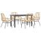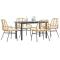 Ensemble à manger jardin coussins 5pcs marron poly rotin verreCet ensemble de salle à manger de jardin est un excellent choix pour les repas en plein air ou pour vous détendre dans le jardin, dans l'arrière-cour ou sur la terrasse. Matériau durable : la résine tressée, également connue sous le nom de poly rotin, est un matériau synthétique solide et nécessitant peu d'entretien qui ressemble au rotin naturel. Elle est légère, facile à nettoyer et couramment utilisée pour les meubles d'extérieur en raison de sa durabilité et de ses propriétés de résistance aux intempéries. Cadre robuste et stable : le cadre en acier enduit de poudre est solide, stable, durable et résistant à la corrosion et aux intempéries, ce qui garantit des performances durables. Dossier et accoudoir pratiques : cette chaise de jardin est dotée d'un dossier et de deux accoudoirs qui offrent un soutien et un confort optimaux aux utilisateurs. Housse amovible et lavable : ces coussins de siège sont dotés de housses amovibles pour un lavage et un entretien faciles. Dessus en verre : le dessus de la table d'extérieur est fabriqué en verre trempé solide et durable, ce qui le rend facile à nettoyer avec un chiffon humide et ajoute une touche d'élégance à votre espace extérieur. Bon à savoir : Pour que vos meubles d'extérieur restent beaux, nous vous recommandons de les protéger avec une housse imperméable. Maximum 110 kg par siège. Soyez conscient du risque de feux ouverts et d'autres sources de forte chaleur à proximité du produit.