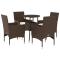 Ensemble à manger de jardin et coussins 5pcs marron rotin verreCet ensemble de salle à manger de jardin est un excellent choix pour les repas en plein air ou pour vous détendre dans le jardin, dans l'arrière-cour ou sur la terrasse. Matériau durable : la résine tressée, également connue sous le nom de poly rotin, est un matériau synthétique solide et nécessitant peu d'entretien qui ressemble au rotin naturel. Il est léger, facile à nettoyer et couramment utilisé pour les meubles d'extérieur en raison de sa durabilité et de ses propriétés de résistance aux intempéries.Expérience d'assise confortable : cet ensemble de meubles d'extérieur, doté de coussins épais, offre une expérience d'assise confortable.Housse amovible et lavable : ces coussins de siège sont dotés de housses amovibles pour un lavage et un entretien faciles.Dessus en verre : le dessus de la table d'extérieur est fabriqué en verre trempé solide et durable, ce qui le rend facile à nettoyer avec un chiffon humide et ajoute une touche d'élégance à votre espace extérieur. Bon à savoir :Pour que vos meubles d'extérieur restent beaux, nous vous recommandons de les protéger avec une housse imperméable. Maximum 110 kg par siège. Soyez conscient du risque de feu ouvert et d'autres sources de forte chaleur à proximité de l'appareil.