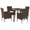 Ensemble à manger de jardin et coussins 5pcs marron rotin verreCet ensemble de salle à manger de jardin est un excellent choix pour les repas en plein air ou pour vous détendre dans le jardin, dans l'arrière-cour ou sur la terrasse. Matériau durable : la résine tressée, également connue sous le nom de poly rotin, est un matériau synthétique solide et nécessitant peu d'entretien qui ressemble au rotin naturel. Il est léger, facile à nettoyer et couramment utilisé pour les meubles d'extérieur en raison de sa durabilité et de ses propriétés de résistance aux intempéries.Expérience d'assise confortable : cet ensemble de meubles d'extérieur, doté de coussins épais, offre une expérience d'assise confortable.Housse amovible et lavable : ces coussins de siège sont dotés de housses amovibles pour un lavage et un entretien faciles.Dessus en verre : le dessus de la table d'extérieur est fabriqué en verre trempé solide et durable, ce qui le rend facile à nettoyer avec un chiffon humide et ajoute une touche d'élégance à votre espace extérieur. Bon à savoir :Pour que vos meubles d'extérieur restent beaux, nous vous recommandons de les protéger avec une housse imperméable. Maximum 110 kg par siège. Soyez conscient du risque de feu ouvert et d'autres sources de forte chaleur à proximité de l'appareil.