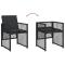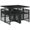 Ensemble à manger de jardin coussins 5pcs noir résine tresséeCet ensemble de salle à manger de jardin est un excellent choix pour les repas en plein air ou pour vous détendre dans le jardin, l'arrière-cour ou le patio. Matériau durable : la résine tressée, également connue sous le nom de poly rotin, est un matériau synthétique solide et nécessitant peu d'entretien qui ressemble au rotin naturel. Elle est légère, facile à nettoyer et couramment utilisée pour les meubles d'extérieur en raison de sa durabilité et de ses propriétés de résistance aux intempéries. Dessus en verre : le dessus de la table d'extérieur est fabriqué en verre trempé solide et durable, ce qui le rend facile à nettoyer avec un chiffon humide et ajoute une touche d'élégance à votre espace extérieur. Rangement compact : ces chaises sont dotées d'un dossier rabattable, ce qui permet de les ranger facilement sous la table. Une fois pliées, elles se rangent parfaitement sous la table, formant un cube peu encombrant. Expérience d'assise confortable : ce mobilier d'extérieur, doté de coussins épais, offre une expérience d'assise confortable. Housse amovible et lavable : ces coussins de siège sont dotés de housses amovibles pour un lavage et un entretien faciles. Les housses de coussin de chaise ont un rabat à l'arrière pour une fixation facile aux chaises. Bon à savoir :Pour que vos meubles d'extérieur restent beaux, nous vous recommandons de les protéger avec une housse imperméable.
