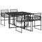 Ensemble à manger de jardin coussins 5pcs noir résine tresséeCet ensemble de salle à manger de jardin est un excellent choix pour les repas en plein air ou pour vous détendre dans le jardin, dans l'arrière-cour ou sur la terrasse. Matériau durable : la résine tressée, également connue sous le nom de poly rotin, est un matériau synthétique solide et nécessitant peu d'entretien qui ressemble au rotin naturel. Il est léger, facile à nettoyer et couramment utilisé pour les meubles d'extérieur en raison de sa durabilité et de ses propriétés de résistance aux intempéries.Rangement compact : ces chaises de jardin peuvent être soigneusement rangés sous la table, ce qui permet d'économiser de l'espace.Housse amovible et lavable : ces coussins de siège sont dotés de housses amovibles pour un lavage et un entretien faciles.Dessus en verre : le dessus de la table d'extérieur est fabriqué en verre trempé solide et durable, ce qui le rend facile à nettoyer avec un chiffon humide et ajoute une touche d'élégance à votre espace extérieur.Cadre robuste et stable : le cadre en acier enduit de poudre assure la solidité et la stabilité du meuble de jardin pour une utilisation quotidienne à l'extérieur.Bon à savoir :Pour que vos meubles d'extérieur restent beaux, nous vous recommandons de les protéger avec une housse imperméable. Maximum 110 kg par siège. Soyez conscient du risque de feu ouvert et d'autres sources de forte chaleur à proximité de l'appareil.