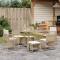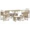 Ensemble à manger de jardin et coussins 7 pcs beige poly rotinCet ensemble de salle à manger de jardin est un excellent choix pour les repas en plein air ou pour vous détendre dans le jardin, dans l'arrière-cour ou sur la terrasse. Matériau durable : la résine tressée, également connue sous le nom de poly rotin, est un matériau synthétique solide et nécessitant peu d'entretien qui ressemble au rotin naturel. Il est léger, facile à nettoyer et couramment utilisé pour les meubles d'extérieur en raison de sa durabilité et de ses propriétés de résistance aux intempéries.Rangement compact : ces chaises et tabourets de jardin peuvent être soigneusement rangés sous la table, ce qui permet d'économiser de l'espace.Expérience d'assise confortable : ce mobilier d'extérieur, doté de coussins épais, offre une expérience d'assise confortable.Housse amovible et lavable : ces coussins de siège sont dotés de housses amovibles pour un lavage et un entretien faciles.Cadre robuste et stable : le cadre en acier enduit de poudre assure la solidité et la stabilité du meuble de jardin pour une utilisation quotidienne à l'extérieur. Bon à savoir : Pour que vos meubles d'extérieur restent beaux, nous vous recommandons de les protéger avec une housse imperméable.