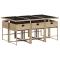 Ensemble à manger de jardin et coussins 7 pcs beige poly rotinCet ensemble de salle à manger de jardin est un excellent choix pour les repas en plein air ou pour vous détendre dans le jardin, dans l'arrière-cour ou sur la terrasse. Matériau durable : la résine tressée, également connue sous le nom de poly rotin, est un matériau synthétique solide et nécessitant peu d'entretien qui ressemble au rotin naturel. Il est léger, facile à nettoyer et couramment utilisé pour les meubles d'extérieur en raison de sa durabilité et de ses propriétés de résistance aux intempéries. Rangement compact : ces chaises sont dotées d'un dossier rabattable, ce qui permet de les ranger facilement sous la table. Une fois pliées, elles se rangent parfaitement sous la table, formant un cube peu encombrant. Expérience d'assise confortable : ce mobilier d'extérieur, doté de coussins épais, offre une expérience d'assise confortable. Housse amovible et lavable : ces coussins de siège sont dotés de housses amovibles pour un lavage et un entretien faciles. Les housses de coussin ont un rabat à l'arrière pour une fixation facile aux dossiers. Dessus en verre : le dessus de la table d'extérieur est fabriqué en verre trempé solide et durable, ce qui le rend facile à nettoyer avec un chiffon humide et ajoute une touche d'élégance à votre espace extérieur. Bon à savoir : Pour que vos meubles d'extérieur restent beaux, nous vous recommandons de les protéger avec une housse imperméable.