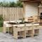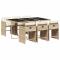 Ensemble à manger de jardin et coussins 7 pcs beige poly rotinCet ensemble de salle à manger de jardin est un excellent choix pour les repas en plein air ou pour vous détendre dans le jardin, dans l'arrière-cour ou sur la terrasse. Matériau durable : la résine tressée, également connue sous le nom de poly rotin, est un matériau synthétique solide et nécessitant peu d'entretien qui ressemble au rotin naturel. Il est léger, facile à nettoyer et couramment utilisé pour les meubles d'extérieur en raison de sa durabilité et de ses propriétés de résistance aux intempéries. Rangement compact : ces chaises sont dotées d'un dossier rabattable, ce qui permet de les ranger facilement sous la table. Une fois pliées, elles se rangent parfaitement sous la table, formant un cube peu encombrant. Expérience d'assise confortable : ce mobilier d'extérieur, doté de coussins bien rembourrés, offre une expérience d'assise confortable. Housse amovible et lavable : ces coussins de siège sont dotés de housses amovibles pour un lavage et un entretien faciles. Les housses de coussin de chaise ont un rabat à l'arrière pour une fixation facile aux chaises. Dessus stable et facile à nettoyer : cette table de jardin est dotée d'un dessus en verre trempé robuste, durable et facile à nettoyer à l'aide d'un chiffon humide. Bon à savoir : Pour que vos meubles d'extérieur restent beaux, nous vous recommandons de les protéger avec une housse imperméable.