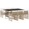 Ensemble à manger de jardin et coussins 7 pcs beige poly rotinCet ensemble de salle à manger de jardin est un excellent choix pour les repas en plein air ou pour vous détendre dans le jardin, l'arrière-cour ou le patio. Matériau durable : la résine tressée, également connue sous le nom de poly rotin, est un matériau synthétique solide et nécessitant peu d'entretien qui ressemble au rotin naturel. Elle est légère, facile à nettoyer et couramment utilisée pour les meubles d'extérieur en raison de sa durabilité et de ses propriétés de résistance aux intempéries. Dessus en verre : le dessus de la table d'extérieur est fabriqué en verre trempé solide et durable, ce qui le rend facile à nettoyer avec un chiffon humide et ajoute une touche d'élégance à votre espace extérieur. Rangement compact : ces chaises sont dotées d'un dossier rabattable, ce qui permet de les ranger facilement sous la table. Une fois pliées, elles se rangent parfaitement sous la table, formant un cube peu encombrant. Expérience d'assise confortable : ce mobilier d'extérieur, doté de coussins épais, offre une expérience d'assise confortable. Housse amovible et lavable : ces coussins de siège sont dotés de housses amovibles pour un lavage et un entretien faciles. Les housses de coussin de chaise ont un rabat à l'arrière pour une fixation facile aux chaises. Bon à savoir : Pour que vos meubles d'extérieur restent beaux, nous vous recommandons de les protéger avec une housse imperméable.