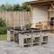 Ensemble à manger de jardin et coussins 7 pcs gris clair rotinCet ensemble de salle à manger de jardin est un excellent choix pour les repas en plein air ou pour vous détendre dans le jardin, dans l'arrière-cour ou sur la terrasse. Matériau durable : la résine tressée, également connue sous le nom de poly rotin, est un matériau synthétique solide et nécessitant peu d'entretien qui ressemble au rotin naturel. Il est léger, facile à nettoyer et couramment utilisé pour les meubles d'extérieur en raison de sa durabilité et de ses propriétés de résistance aux intempéries. Rangement compact : ces chaises sont dotées d'un dossier rabattable, ce qui permet de les ranger facilement sous la table. Une fois pliées, elles se rangent parfaitement sous la table, formant un cube peu encombrant. Expérience d'assise confortable : ce mobilier d'extérieur, doté de coussins épais, offre une expérience d'assise confortable. Housse amovible et lavable : ces coussins de siège sont dotés de housses amovibles pour un lavage et un entretien faciles. Les housses de coussin de chaise ont un rabat à l'arrière pour une fixation facile aux chaises. Dessus stable et facile à nettoyer : cette table de jardin est dotée d'un dessus en verre trempé robuste, durable et facile à nettoyer à l'aide d'un chiffon humide. Bon à savoir : Pour que vos meubles d'extérieur restent beaux, nous vous recommandons de les protéger avec une housse imperméable. Maximum 110 kg par siège.