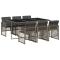 Ensemble à manger de jardin et coussins 7 pcs gris rotinCet ensemble de salle à manger de jardin est un excellent choix pour les repas en plein air ou pour vous détendre dans le jardin, l'arrière-cour ou le patio. Matériau durable : la résine tressée, également connue sous le nom de poly rotin, est un matériau synthétique solide et nécessitant peu d'entretien qui ressemble au rotin naturel. Elle est légère, facile à nettoyer et couramment utilisée pour les meubles d'extérieur en raison de sa durabilité et de ses propriétés de résistance aux intempéries. Dessus en verre : le dessus de la table d'extérieur est fabriqué en verre trempé solide et durable, ce qui le rend facile à nettoyer avec un chiffon humide et ajoute une touche d'élégance à votre espace extérieur. Rangement compact : ces chaises sont dotées d'un dossier rabattable, ce qui permet de les ranger facilement sous la table. Une fois pliées, elles se rangent parfaitement sous la table, formant un cube peu encombrant. Expérience d'assise confortable : ce mobilier d'extérieur, doté de coussins épais, offre une expérience d'assise confortable. Housse amovible et lavable : ces coussins de siège sont dotés de housses amovibles pour un lavage et un entretien faciles. Les housses de coussin de chaise ont un rabat à l'arrière pour une fixation facile aux chaises. Bon à savoir : Pour que vos meubles d'extérieur restent beaux, nous vous recommandons de les protéger avec une housse imperméable.