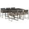 Ensemble à manger de jardin et coussins 7 pcs gris rotinCet ensemble de salle à manger de jardin est un excellent choix pour les repas en plein air ou pour vous détendre dans le jardin, dans l'arrière-cour ou sur la terrasse. Matériau durable : la résine tressée, également connue sous le nom de poly rotin, est un matériau synthétique solide et nécessitant peu d'entretien qui ressemble au rotin naturel. Il est léger, facile à nettoyer et couramment utilisé pour les meubles d'extérieur en raison de sa durabilité et de ses propriétés de résistance aux intempéries. Rangement compact : ces chaises sont dotées d'un dossier rabattable, ce qui permet de les ranger facilement sous la table. Une fois pliées, elles se rangent parfaitement sous la table, formant un cube peu encombrant. Expérience d'assise confortable : ce mobilier d'extérieur, doté de coussins épais, offre une expérience d'assise confortable. Housse amovible et lavable : ces coussins de siège sont dotés de housses amovibles pour un lavage et un entretien faciles. Les housses de coussin ont un rabat à l'arrière pour une fixation facile aux dossiers. Dessus en verre : le dessus de la table d'extérieur est fabriqué en verre trempé solide et durable, ce qui le rend facile à nettoyer avec un chiffon humide et ajoute une touche d'élégance à votre espace extérieur. Bon à savoir : Pour que vos meubles d'extérieur restent beaux, nous vous recommandons de les protéger avec une housse imperméable.