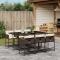 Ensemble à manger de jardin et coussins 7 pcs marron rotinCet ensemble de salle à manger de jardin est un excellent choix pour les repas en plein air ou pour vous détendre dans le jardin, dans l'arrière-cour ou sur la terrasse. Matériau durable : la résine tressée, également connue sous le nom de poly rotin, est un matériau synthétique solide et nécessitant peu d'entretien qui ressemble au rotin naturel. Il est léger, facile à nettoyer et couramment utilisé pour les meubles d'extérieur en raison de sa durabilité et de ses propriétés de résistance aux intempéries. Rangement compact : ces chaises sont dotées d'un dossier rabattable, ce qui permet de les ranger facilement sous la table. Une fois pliées, elles se rangent parfaitement sous la table, formant un cube peu encombrant. Expérience d'assise confortable : ce mobilier d'extérieur, doté de coussins épais, offre une expérience d'assise confortable. Housse amovible et lavable : ces coussins de siège sont dotés de housses amovibles pour un lavage et un entretien faciles. Les housses de coussin ont un rabat à l'arrière pour une fixation facile aux dossiers. Dessus en verre : le dessus de la table d'extérieur est fabriqué en verre trempé solide et durable, ce qui le rend facile à nettoyer avec un chiffon humide et ajoute une touche d'élégance à votre espace extérieur. Bon à savoir : Pour que vos meubles d'extérieur restent beaux, nous vous recommandons de les protéger avec une housse imperméable.