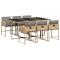 Ensemble à manger de jardin coussins 7 pcs mélange beige rotinCet ensemble de salle à manger de jardin est un excellent choix pour les repas en plein air ou pour vous détendre dans le jardin, dans l'arrière-cour ou sur la terrasse. Matériau durable : la résine tressée, également connue sous le nom de poly rotin, est un matériau synthétique solide et nécessitant peu d'entretien qui ressemble au rotin naturel. Il est léger, facile à nettoyer et couramment utilisé pour les meubles d'extérieur en raison de sa durabilité et de ses propriétés de résistance aux intempéries. Rangement compact : ces chaises sont dotées d'un dossier rabattable, ce qui permet de les ranger facilement sous la table. Une fois pliées, elles se rangent parfaitement sous la table, formant un cube peu encombrant. Expérience d'assise confortable : ce mobilier d'extérieur, doté de coussins épais, offre une expérience d'assise confortable. Housse amovible et lavable : ces coussins de siège sont dotés de housses amovibles pour un lavage et un entretien faciles. Les housses de coussin ont un rabat à l'arrière pour une fixation facile aux dossiers. Dessus en verre : le dessus de la table d'extérieur est fabriqué en verre trempé solide et durable, ce qui le rend facile à nettoyer avec un chiffon humide et ajoute une touche d'élégance à votre espace extérieur. Bon à savoir : Pour que vos meubles d'extérieur restent beaux, nous vous recommandons de les protéger avec une housse imperméable. Maximum 110 kg par siège.