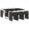 Ensemble à manger de jardin coussins 7pcs Noir Résine tresséeCet ensemble de salle à manger de jardin est un excellent choix pour les repas en plein air ou pour vous détendre dans le jardin, dans l'arrière-cour ou sur la terrasse. Matériau durable : la résine tressée, également connue sous le nom de poly rotin, est un matériau synthétique solide et nécessitant peu d'entretien qui ressemble au rotin naturel. Il est léger, facile à nettoyer et couramment utilisé pour les meubles d'extérieur en raison de sa durabilité et de ses propriétés de résistance aux intempéries. Rangement compact : ces chaises sont dotées d'un dossier rabattable, ce qui permet de les ranger facilement sous la table. Une fois pliées, elles se rangent parfaitement sous la table, formant un cube peu encombrant. Expérience d'assise confortable : ce mobilier d'extérieur, doté de coussins épais, offre une expérience d'assise confortable. Housse amovible et lavable : ces coussins de siège sont dotés de housses amovibles pour un lavage et un entretien faciles. Les housses de coussin de chaise ont un rabat à l'arrière pour une fixation facile aux chaises. Dessus stable et facile à nettoyer : cette table de jardin est dotée d'un dessus en verre trempé robuste, durable et facile à nettoyer à l'aide d'un chiffon humide. Bon à savoir : Pour que vos meubles d'extérieur restent beaux, nous vous recommandons de les protéger avec une housse imperméable. Maximum 110 kg par siège. Soyez conscient du risque de feu ouvert et d'autres sources de forte chaleur à proximité de l'appareil.
