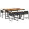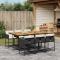 Ensemble à manger de jardin coussins 7pcs Noir Résine tresséeCet ensemble de salle à manger de jardin est un excellent choix pour les repas en plein air ou pour vous détendre dans le jardin, dans l'arrière-cour ou sur la terrasse. Matériau durable : la résine tressée, également connue sous le nom de poly rotin, est un matériau synthétique solide et nécessitant peu d'entretien qui ressemble au rotin naturel. Il est léger, facile à nettoyer et couramment utilisé pour les meubles d'extérieur en raison de sa durabilité et de ses propriétés de résistance aux intempéries. Rangement compact : ces chaises sont dotées d'un dossier rabattable, ce qui permet de les ranger facilement sous la table. Une fois pliées, elles se rangent parfaitement sous la table, formant un cube peu encombrant. Expérience d'assise confortable : ce mobilier d'extérieur, doté de coussins épais, offre une expérience d'assise confortable. Housse amovible et lavable : ces coussins de siège sont dotés de housses amovibles pour un lavage et un entretien faciles. Les housses de coussin ont un rabat à l'arrière pour une fixation facile aux dossiers. Dessus stable et facile à nettoyer : cette table de jardin a un dessus en bois d'acacia robuste, durable et facile à nettoyer avec un chiffon humide. Bon à savoir : Pour que vos meubles d'extérieur restent beaux, nous vous recommandons de les protéger avec une housse imperméable. Maximum 110 kg par siège. Soyez conscient du risque de feu ouvert et d'autres sources de forte chaleur à proximité de l'appareil.