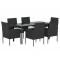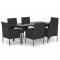 Ensemble à manger de jardin coussins 7pcs Noir Résine tresséeProfitez d'un bon repas ou d'un thé l'après-midi dans votre espace extérieur avec cet ensemble de salle à manger de jardin ! Matériau résistant aux intempéries : la résine tressée, également connue sous le nom de rotin poly, résiste aux intempéries et est facile à nettoyer. Elle reste belle à l'extérieur pendant une longue période. Elle offre une excellente qualité, commodité et un aspect esthétique. Cadre robuste : les cadres en acier enduit de poudre rendent l'ensemble de salle à manger d'extérieur robuste et stable pour une utilisation quotidienne à l'extérieur. Dessus de table pratique : le dessus lisse de la table de salle à manger est en verre trempé, facile à nettoyer avec un chiffon humide. De plus, le dessus robuste est parfait pour placer des repas, des boissons et d'autres objets décoratifs. Design confortable : conçues avec des dossiers et des accoudoirs incurvés, ces chaises d'extérieur offrent un maximum de confort. Confort supplémentaire : les coussins bien rembourrés offrent un confort ultime pendant votre temps d'assise. Remarque : Afin de prolonger la durée de vie de votre mobilier d'extérieur, nous vous recommandons de le protéger avec une housse imperméable. Chaque produit est livré avec un manuel de montage dans la boîte pour un montage facile. Maximum 110 kg par siège. Soyez conscient du risque de feu ouvert et d'autres sources de forte chaleur à proximité de l'appareil.