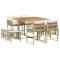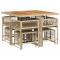 Ensemble à manger de jardin et coussins 9 pcs beige Poly rotinCet ensemble de salle à manger de jardin est un excellent choix pour les repas en plein air ou pour vous détendre dans le jardin, dans l'arrière-cour ou sur la terrasse. Matériau durable : la résine tressée, également connue sous le nom de poly rotin, est un matériau synthétique solide et nécessitant peu d'entretien qui ressemble au rotin naturel. Il est léger, facile à nettoyer et couramment utilisé pour les meubles d'extérieur en raison de sa durabilité et de ses propriétés de résistance aux intempéries. Rangement compact : ces chaises sont dotées d'un dossier rabattable, ce qui permet de les ranger facilement sous la table. Une fois pliées, elles se rangent parfaitement sous la table, formant un cube peu encombrant. De plus, les tabourets peuvent également être rangés sous les chaises, maximisant encore davantage l'efficacité de l'espace. Expérience d'assise confortable : ce mobilier d'extérieur, doté de coussins épais, offre une expérience d'assise confortable. Housse amovible et lavable : ces coussins de siège sont dotés de housses amovibles pour un lavage et un entretien faciles. Les housses de coussin ont un rabat à l'arrière pour une fixation facile aux dossiers. Dessus stable et facile à nettoyer : cette table de jardin a un dessus en bois d'acacia robuste, durable et facile à nettoyer avec un chiffon humide. Bon à savoir : Pour que vos meubles d'extérieur restent beaux, nous vous recommandons de les protéger avec une housse imperméable.