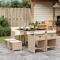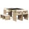 Ensemble à manger de jardin et coussins 9 pcs beige Poly rotinCet ensemble de salle à manger de jardin est un excellent choix pour les repas en plein air ou pour vous détendre dans le jardin, dans l'arrière-cour ou sur la terrasse. Matériau durable : la résine tressée, également connue sous le nom de poly rotin, est un matériau synthétique solide et nécessitant peu d'entretien qui ressemble au rotin naturel. Il est léger, facile à nettoyer et couramment utilisé pour les meubles d'extérieur en raison de sa durabilité et de ses propriétés de résistance aux intempéries. Rangement compact : ces chaises sont dotées d'un dossier rabattable, ce qui permet de les ranger facilement sous la table. Une fois pliées, elles se rangent parfaitement sous la table, formant un cube peu encombrant. De plus, les tabourets peuvent également être rangés sous les chaises, maximisant encore davantage l'efficacité de l'espace. Expérience d'assise confortable : ce mobilier d'extérieur, doté de coussins épais, offre une expérience d'assise confortable. Housse amovible et lavable : ces coussins de siège sont dotés de housses amovibles pour un lavage et un entretien faciles. Les housses de coussin de chaise ont un rabat à l'arrière pour une fixation facile aux chaises. Dessus stable et facile à nettoyer : cette table de jardin est dotée d'un dessus en verre trempé robuste, durable et facile à nettoyer à l'aide d'un chiffon humide. Bon à savoir : Pour que vos meubles d'extérieur restent beaux, nous vous recommandons de les protéger avec une housse imperméable. Maximum 110 kg par siège. Soyez conscient du risque de feu ouvert et d'autres sources de forte chaleur à proximité de l'appareil.