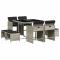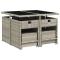 Ensemble à manger de jardin et coussins 9 pcs gris clair rotinCet ensemble de salle à manger de jardin est un excellent choix pour les repas en plein air ou pour vous détendre dans le jardin, dans l'arrière-cour ou sur la terrasse. Matériau durable : la résine tressée, également connue sous le nom de poly rotin, est un matériau synthétique solide et nécessitant peu d'entretien qui ressemble au rotin naturel. Il est léger, facile à nettoyer et couramment utilisé pour les meubles d'extérieur en raison de sa durabilité et de ses propriétés de résistance aux intempéries. Rangement compact : ces chaises sont dotées d'un dossier rabattable, ce qui permet de les ranger facilement sous la table. Une fois pliées, elles se rangent parfaitement sous la table, formant un cube peu encombrant. De plus, les tabourets peuvent également être rangés sous les chaises, maximisant encore davantage l'efficacité de l'espace. Expérience d'assise confortable : ce mobilier d'extérieur, doté de coussins épais, offre une expérience d'assise confortable. Housse amovible et lavable : ces coussins de siège sont dotés de housses amovibles pour un lavage et un entretien faciles. Les housses de coussin de chaise ont un rabat à l'arrière pour une fixation facile aux chaises. Dessus stable et facile à nettoyer : cette table de jardin est dotée d'un dessus en verre trempé robuste, durable et facile à nettoyer à l'aide d'un chiffon humide. Bon à savoir : Pour que vos meubles d'extérieur restent beaux, nous vous recommandons de les protéger avec une housse imperméable. Maximum 110 kg par siège.