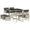 Ensemble à manger de jardin et coussins 9 pcs gris clair rotinCet ensemble de salle à manger de jardin est un excellent choix pour les repas en plein air ou pour vous détendre dans le jardin, dans l'arrière-cour ou sur la terrasse. Matériau durable : la résine tressée, également connue sous le nom de poly rotin, est un matériau synthétique solide et nécessitant peu d'entretien qui ressemble au rotin naturel. Il est léger, facile à nettoyer et couramment utilisé pour les meubles d'extérieur en raison de sa durabilité et de ses propriétés de résistance aux intempéries. Rangement compact : ces chaises sont dotées d'un dossier rabattable, ce qui permet de les ranger facilement sous la table. Une fois pliées, elles se rangent parfaitement sous la table, formant un cube peu encombrant. De plus, les tabourets peuvent également être rangés sous les chaises, maximisant encore davantage l'efficacité de l'espace. Expérience d'assise confortable : ce mobilier d'extérieur, doté de coussins épais, offre une expérience d'assise confortable. Housse amovible et lavable : ces coussins de siège sont dotés de housses amovibles pour un lavage et un entretien faciles. Les housses de coussin ont un rabat à l'arrière pour une fixation facile aux dossiers. Dessus en verre : le dessus de la table d'extérieur est fabriqué en verre trempé solide et durable, ce qui le rend facile à nettoyer avec un chiffon humide et ajoute une touche d'élégance à votre espace extérieur. Bon à savoir : Pour que vos meubles d'extérieur restent beaux, nous vous recommandons de les protéger avec une housse imperméable. Maximum 110 kg par siège. Soyez conscient du risque de feu ouvert et d'autres sources de forte chaleur à proximité de l'appareil.