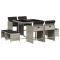 Ensemble à manger de jardin et coussins 9 pcs gris clair rotinCet ensemble de salle à manger de jardin est un excellent choix pour les repas en plein air ou pour vous détendre dans le jardin, dans l'arrière-cour ou sur la terrasse. Matériau durable : la résine tressée, également connue sous le nom de poly rotin, est un matériau synthétique solide et nécessitant peu d'entretien qui ressemble au rotin naturel. Il est léger, facile à nettoyer et couramment utilisé pour les meubles d'extérieur en raison de sa durabilité et de ses propriétés de résistance aux intempéries. Rangement compact : ces chaises sont dotées d'un dossier rabattable, ce qui permet de les ranger facilement sous la table. Une fois pliées, elles se rangent parfaitement sous la table, formant un cube peu encombrant. De plus, les tabourets peuvent également être rangés sous les chaises, maximisant encore davantage l'efficacité de l'espace. Expérience d'assise confortable : ce mobilier d'extérieur, doté de coussins épais, offre une expérience d'assise confortable. Housse amovible et lavable : ces coussins de siège sont dotés de housses amovibles pour un lavage et un entretien faciles. Les housses de coussin de chaise ont un rabat à l'arrière pour une fixation facile aux chaises. Dessus stable et facile à nettoyer : cette table de jardin est dotée d'un dessus en verre trempé robuste, durable et facile à nettoyer à l'aide d'un chiffon humide. Bon à savoir : Pour que vos meubles d'extérieur restent beaux, nous vous recommandons de les protéger avec une housse imperméable. Maximum 110 kg par siège. Soyez conscient du risque de feu ouvert et d'autres sources de forte chaleur à proximité de l'appareil.